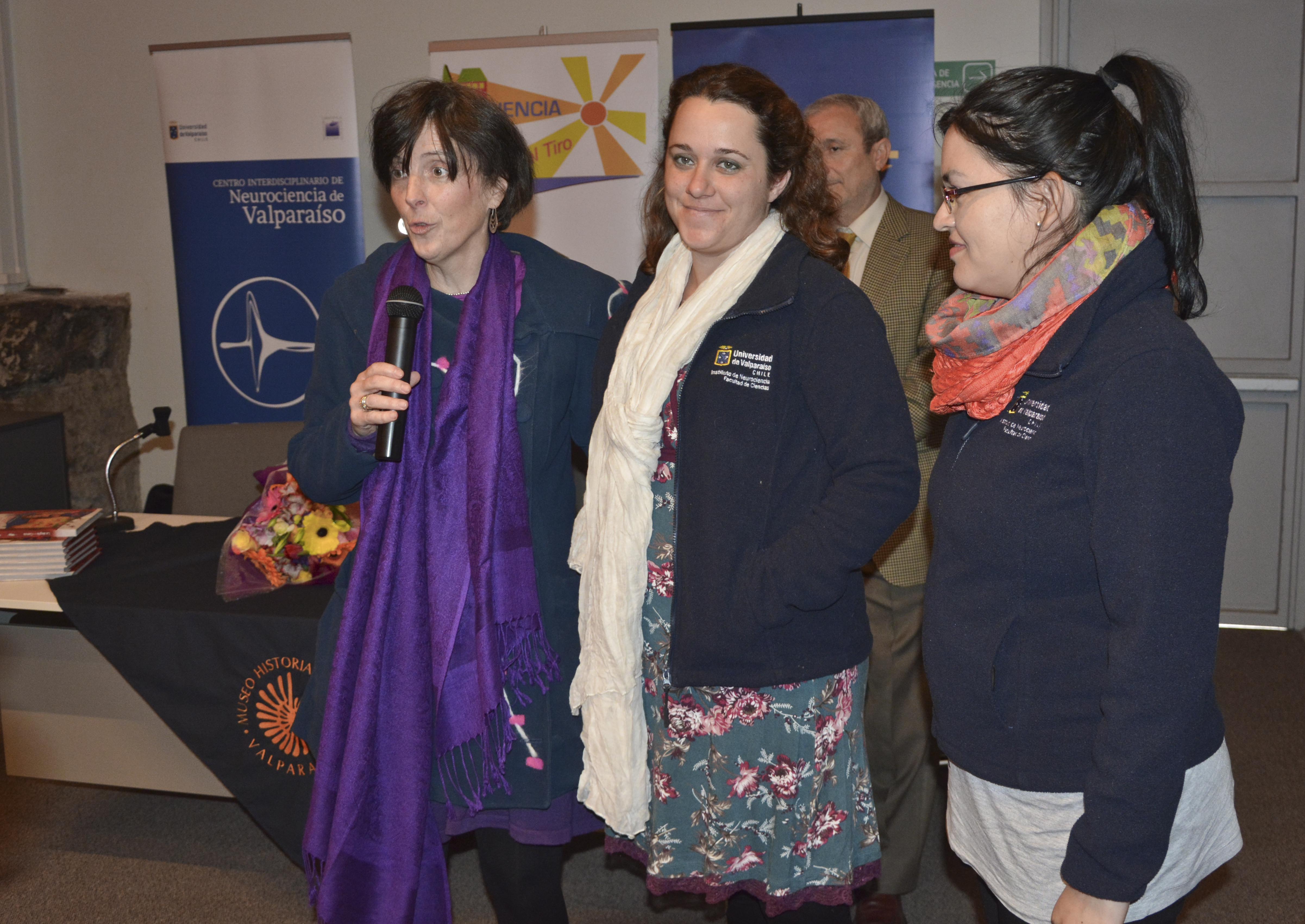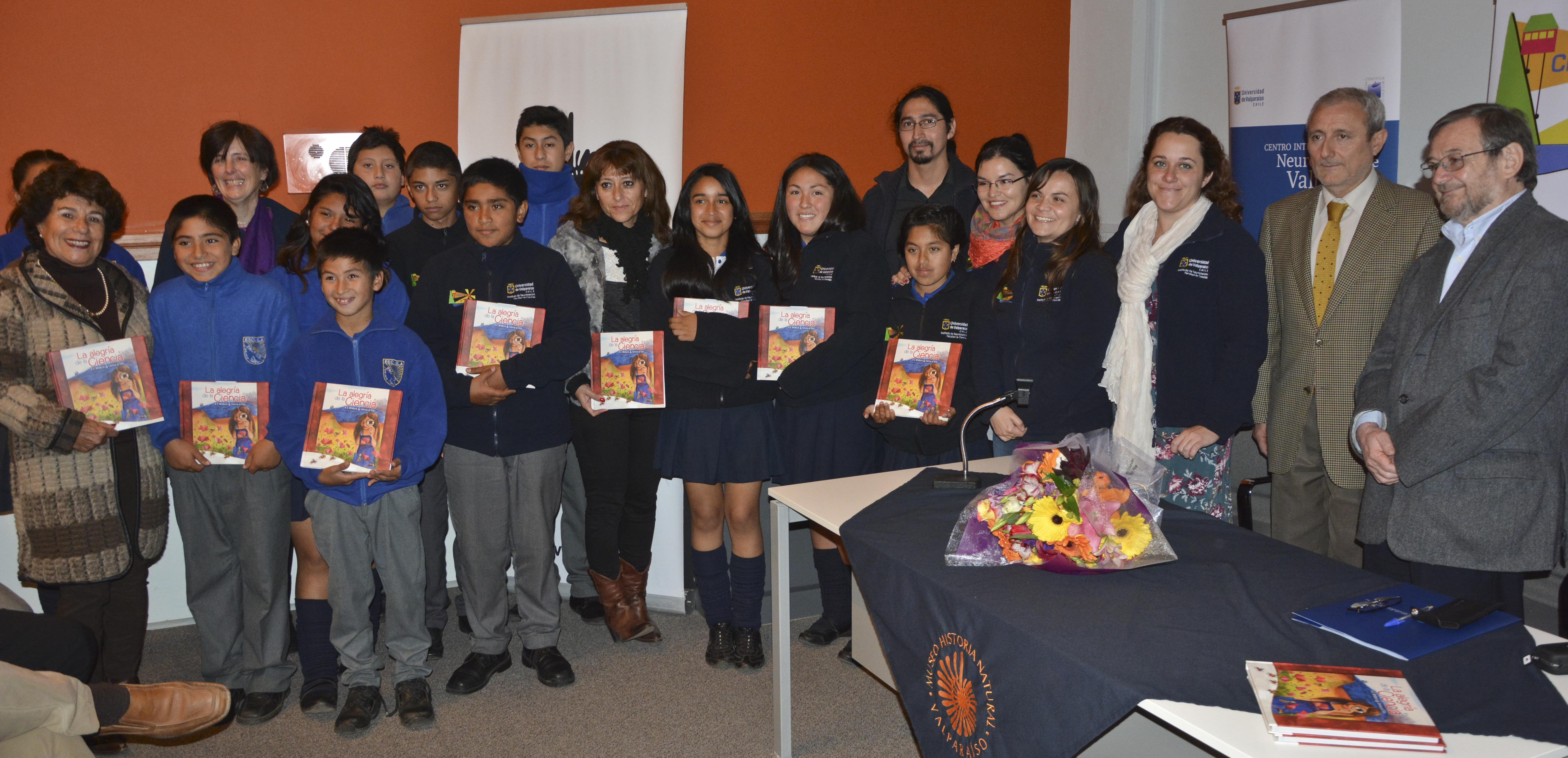 En una ceremonia realizada en el Museo de Historia Natural de Valparaíso se presentó el libro “La alegría de la Ciencia”, escrito por la neurobióloga del CINV y directora del Programa Ciencia al Tiro, Katheleen Withlock. Al evento asistieron el rector de la Universidad de Valparaíso, profesor Aldo Valle; el director del CINV, Premio Nacional de Ciencias, doctor Ramón Latorre; el decano de la Facultad de Ciencias UV , doctor Juan Kuznar; la directora del museo, Loredana Rosso; junto a investigadores.
