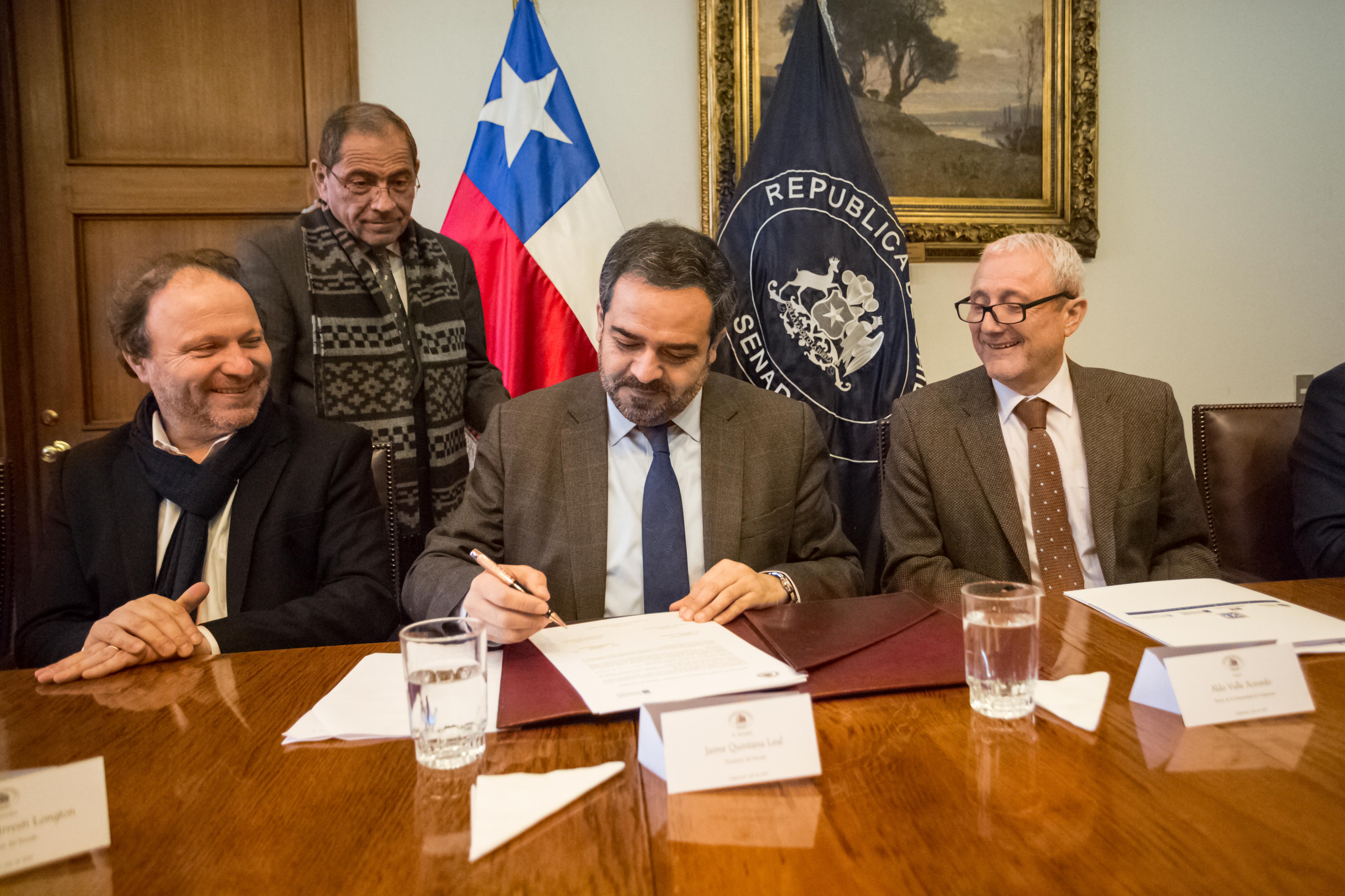 | dc.description.abstract | En dependencias del Congreso Nacional, la Universidad de Valparaíso y el Senado de la República firmaron un convenio de colaboración para organizar en conjunto un ciclo de seminarios de análisis sobre proyectos de reforma al Tribunal Constitucional, a través del Departamento de Derecho Público de la Escuela de Derecho UV. Firmaron el convenio el rector de la Universidad de Valparaíso, Aldo Valle; el presidente del Senado, Jaime Quintana; el vicepresidente del Senado, Alfonso de Urresti; el secretario general del Senado, Raúl Guzmán; y el presidente de la comisión Constitución, Legislación, Justicia y Reglamento del Senado, Felipe Harboe. Por parte Derecho UV asistieron el decano de la Facultad de Derecho, Alberto Balbontín; el presidente del Departamento de Derecho Público, Jaime Bassa; el profesor del Departamento de Derecho Público, Christian Viera; y el profesor de Derecho Administrativo, Juan Carlos Ferrada. | en_ES |